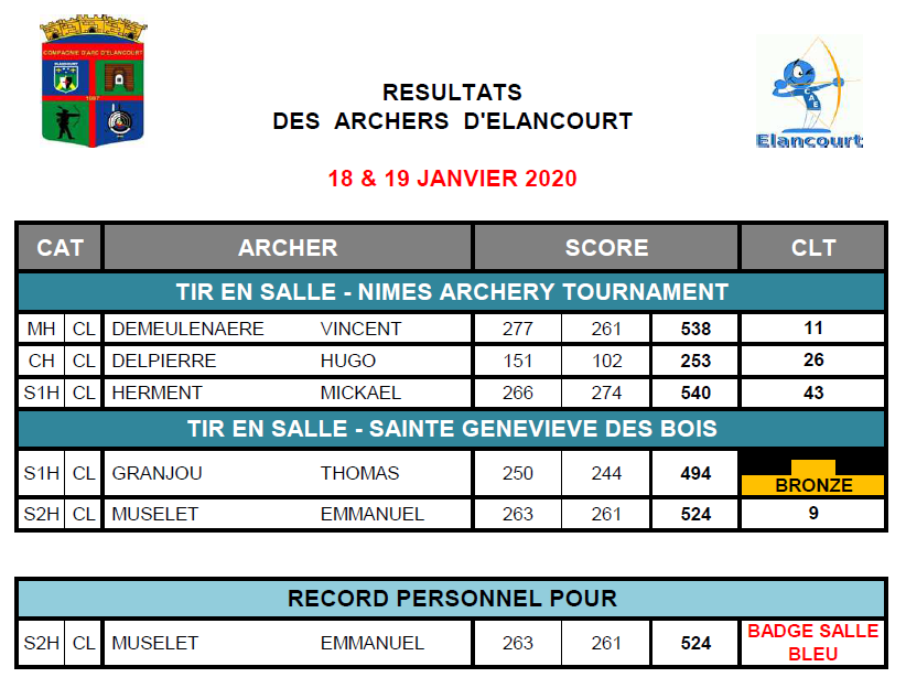 Voici les résultats du weekend de nos archers.